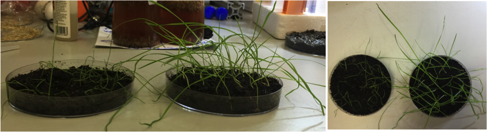 Grass seed germination after 72hrs, treated with normal water (on the left) and the Reepel approach(on the right).